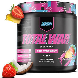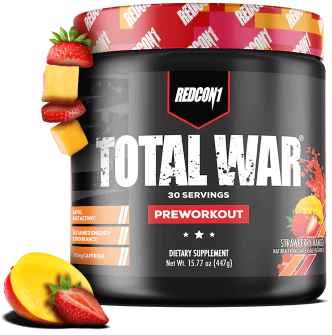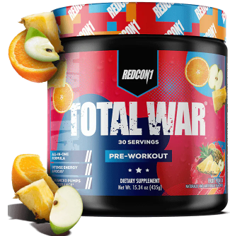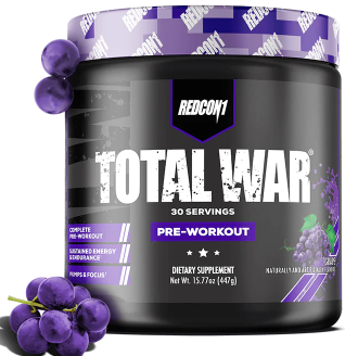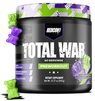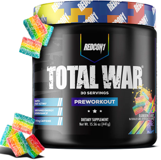 Looking for the ultimate preworkout supplement to take your workouts to the next level? Experience REDCON1’s #1 selling preworkout formula! TOTAL WAR is an all-in-one pre workout powder that packs a powerful combination of endurance, pump, energy and focus factors. With 320mg caffeine, 3.2g beta alanine and 6g citrulline malate at the core of the formula, every scoop of TOTAL WAR is loaded with clinically researched ingredients at efficacious levels so you can train at an elite level, every time.